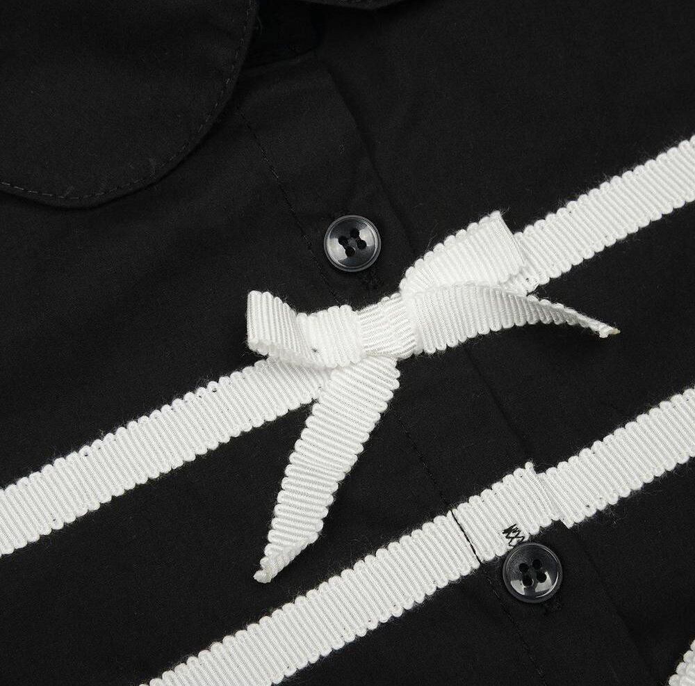 キッチュなリブテープとリボンディテールがポイントのブラウス。