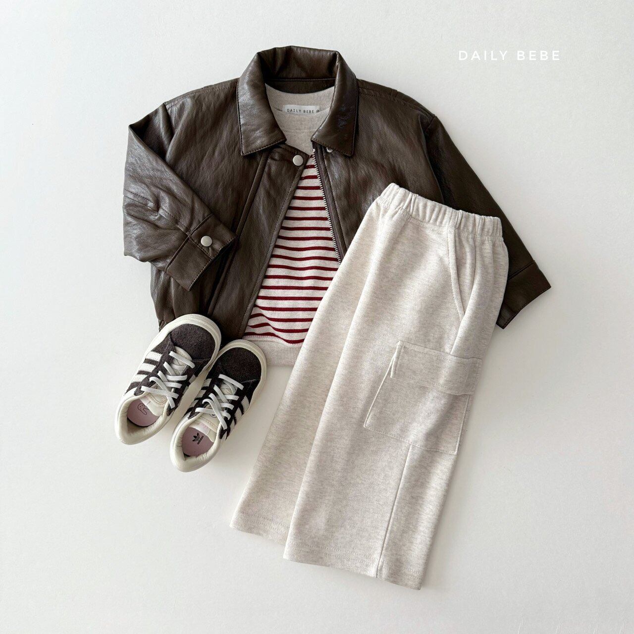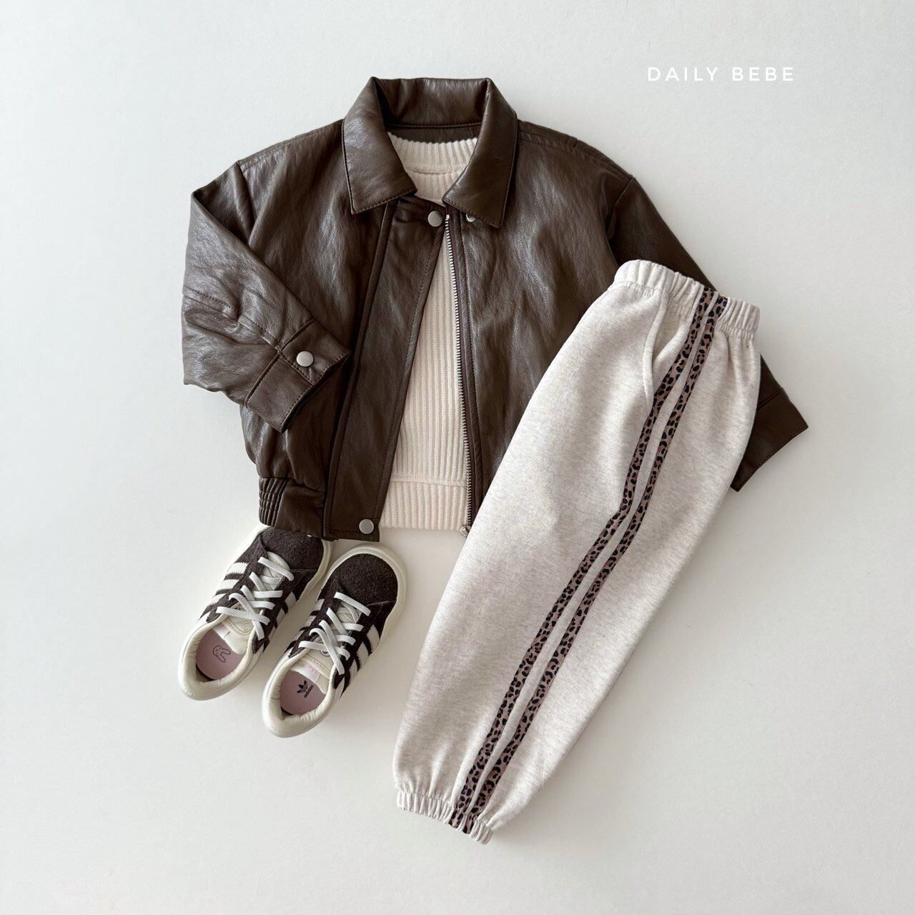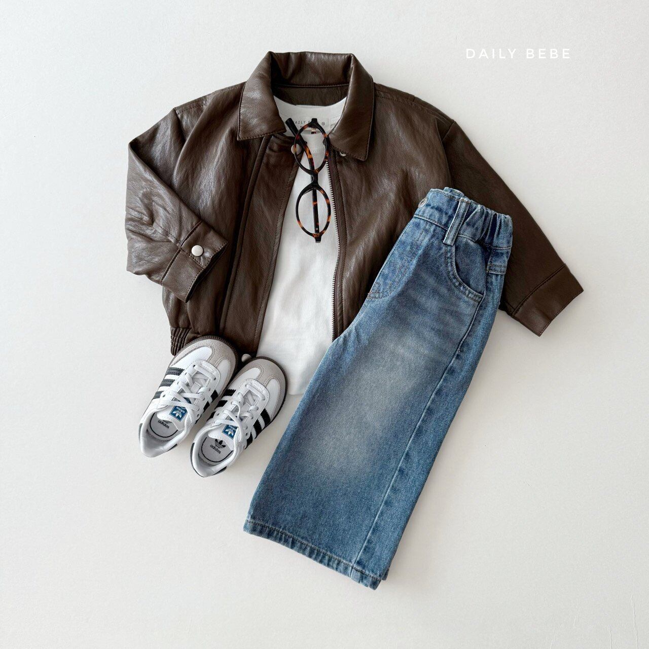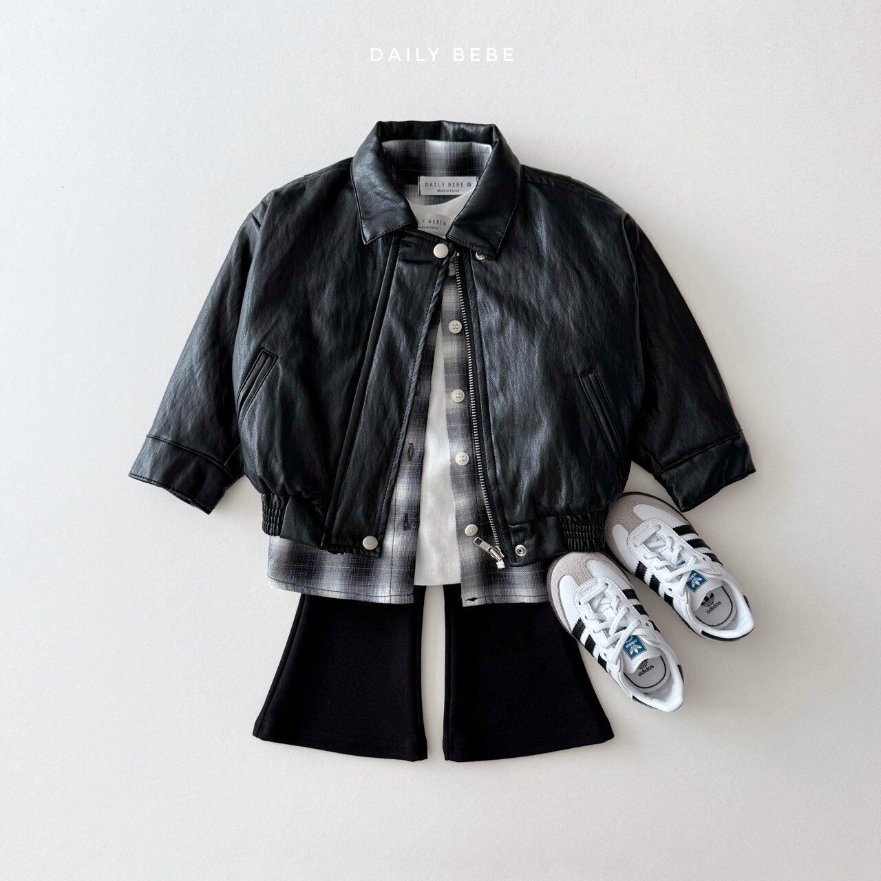 シンプルなデザインで着回しやすい、レザー風ジャケット。