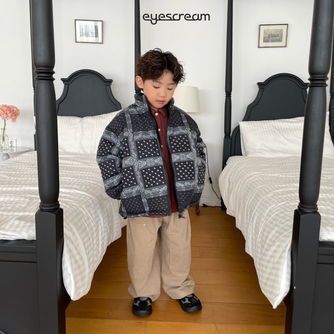 133cm/32kgのうちの息子は、他のブランドではJMサイズを着ていますが、アイスクリームブランドだけはJSサイズが一番きれいなシルエットで着られます。