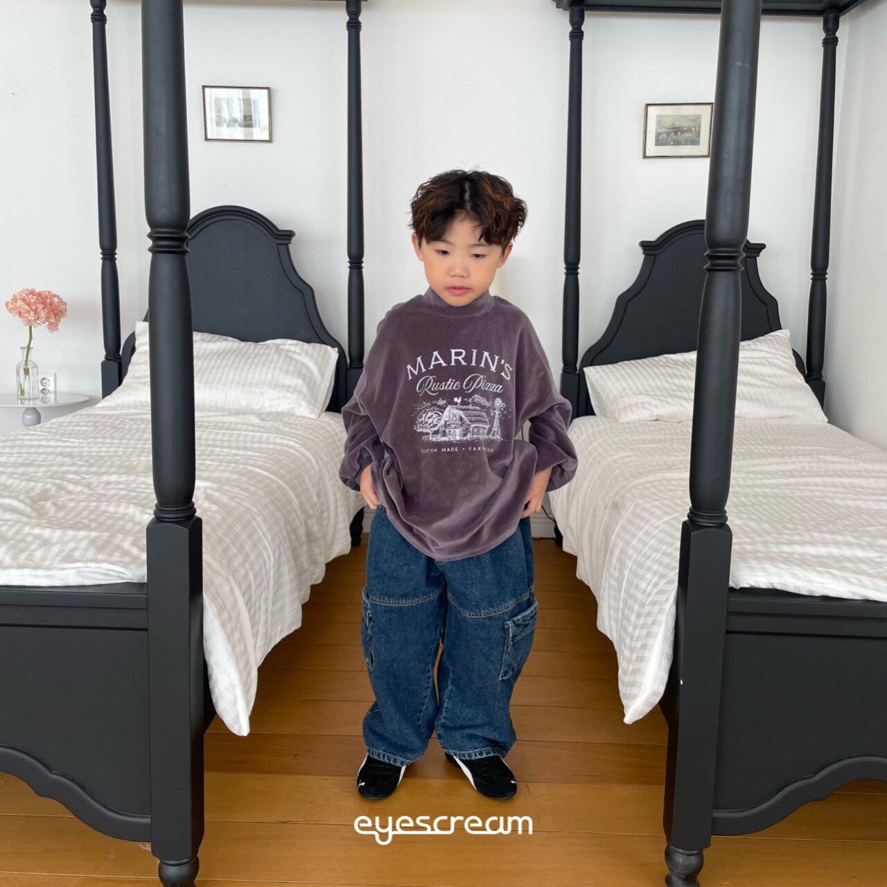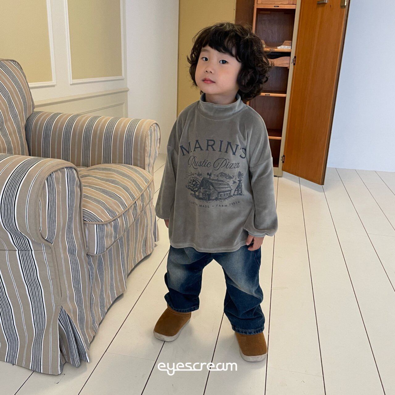 133cm/32kgのうちの息子は、他のブランドではJMサイズを着ていますが、アイスクリームブランドだけはJSサイズが一番きれいなシルエットで着られます。